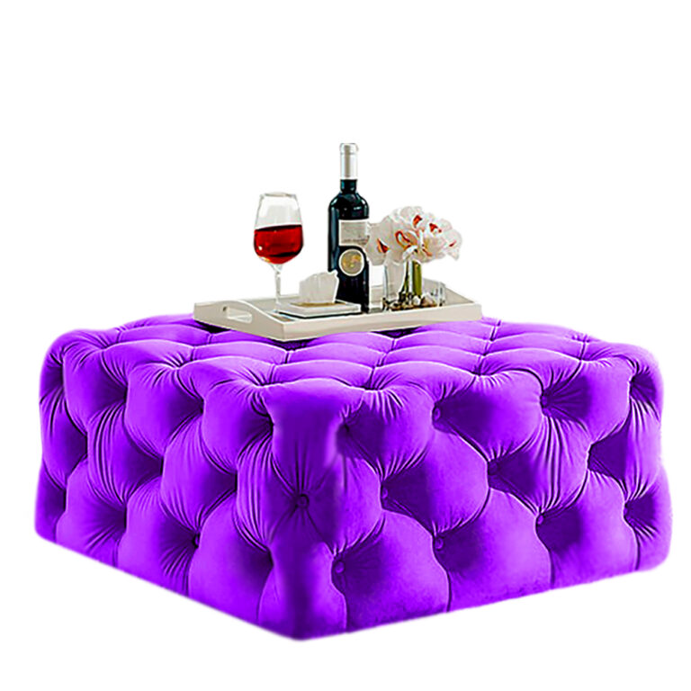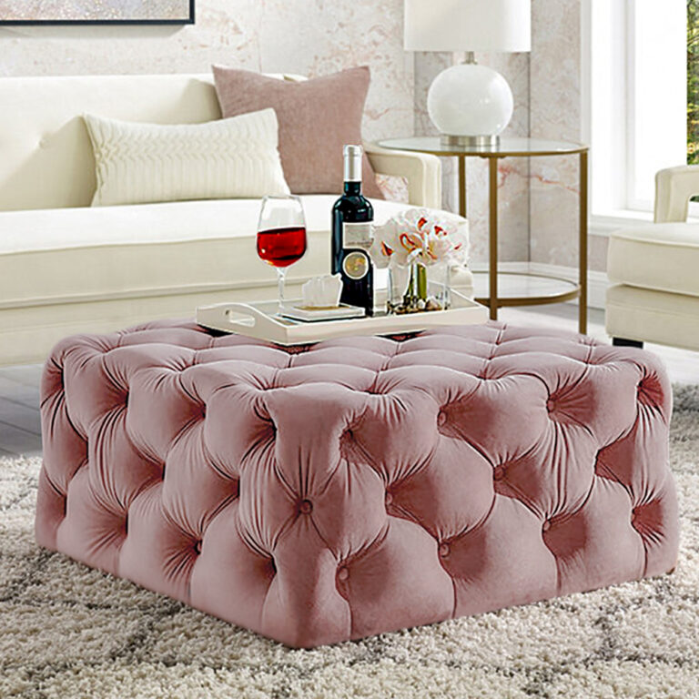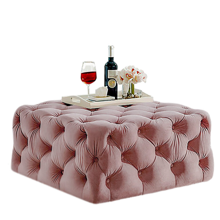 HOME PREMIUM Trae para ti, Sofisticada mesa de centro Lucy con diseño capitonado combinado con un tablero de vidrio que le aporta elegancia a tu sala o lugar favorito.
